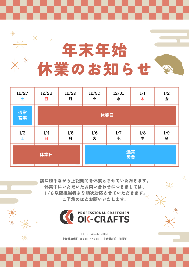【年末年始休業のお知らせ】